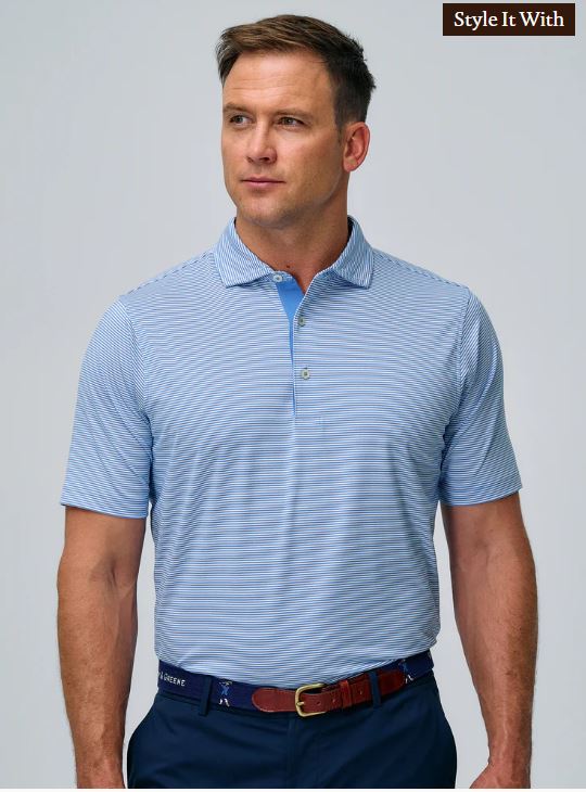 Named for New York City’s Bryant Park, this polo is an instant classic. It features a timeless striped print and an ultra-lightweight, moisture-wicking stretch fabric. The customizable cutaway collar lets you create the perfect shape every time, and the slightly tapered fit looks great on everyone. Wear it on the course, in the clubhouse, and wherever else your day takes you.